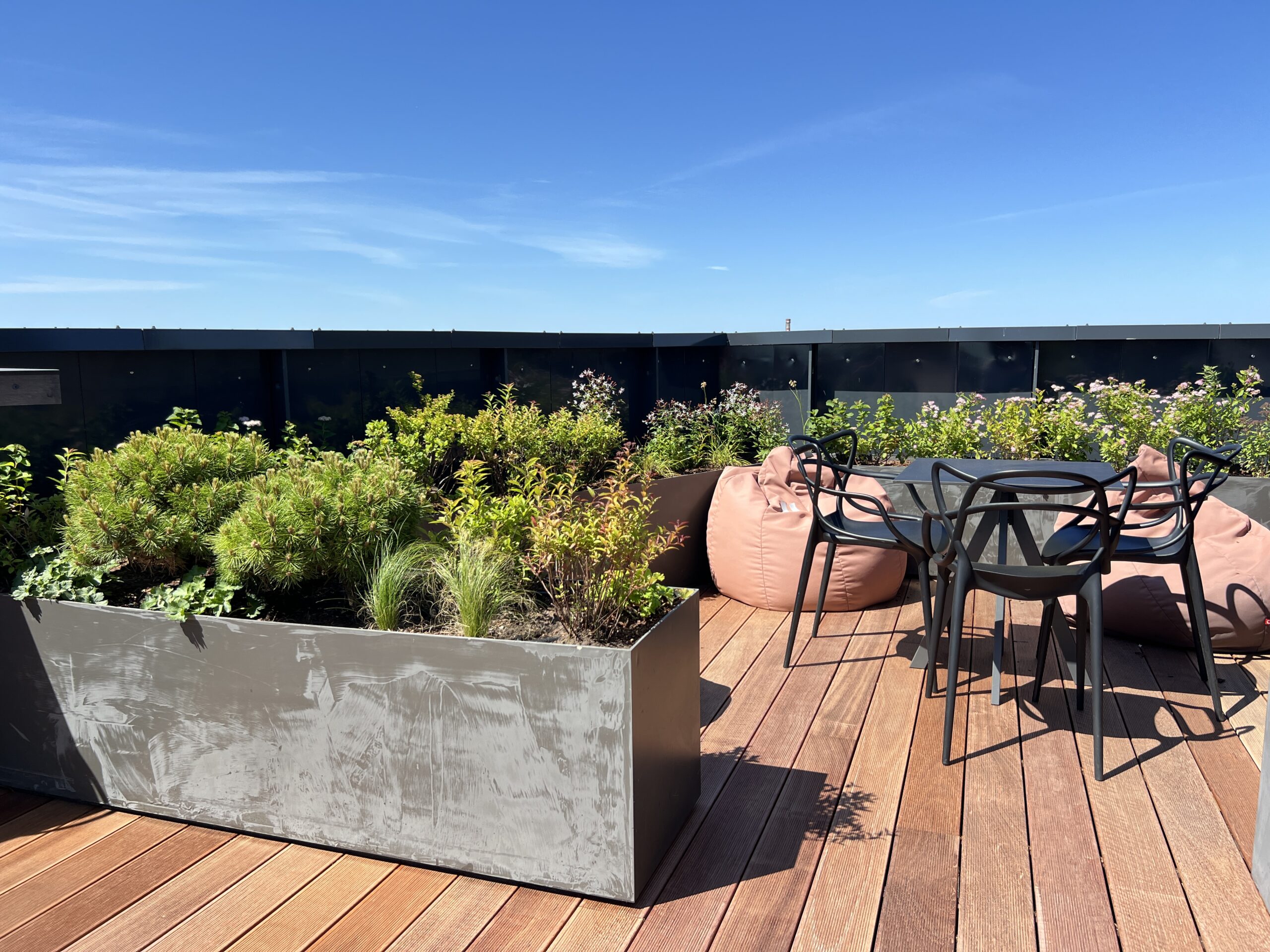Dienesta viesnīca Jelgavas iela 8 un 12 (Rīgā). Teritorija un jumta dārzs